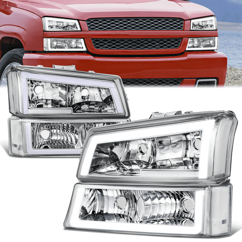 03-07 Chevy Silverado / Avalanche LED DRL Headlights+Bumper Lamps (Chrome Clear)