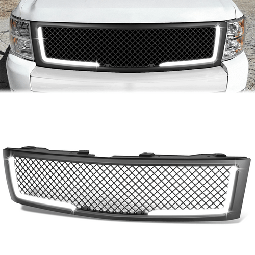 07-13 Chevy Silverado 1500 LED DRL Front Grille - Diamond Mesh