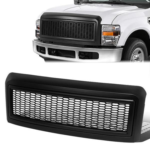 08-10 Ford F250-F550 Super Duty Front Grille - Badgeless Honeycomb Mesh - Matte Black