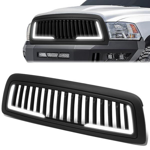 09-12 Ram 1500 LED DRL Front Grille - Badgeless Vertical Fence Style - Matte Black