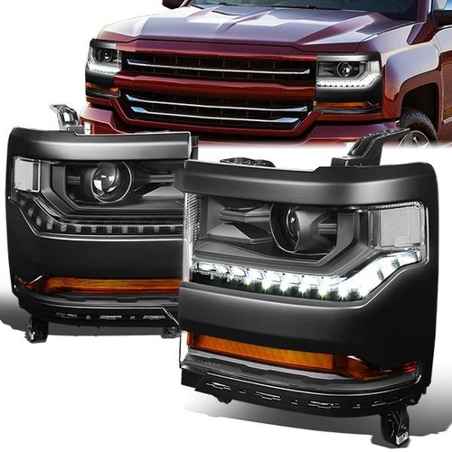 16-19 Chevy Silverado 1500 LED DRL Projector Headlights - Black Housing Clear Corner
