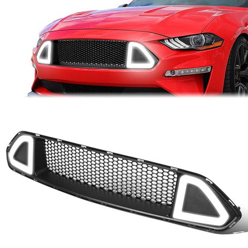 18-20 Ford Mustang Front Upper Bumper Grille w/Triangle LED DRL - Badgeless Honeycomb Mesh