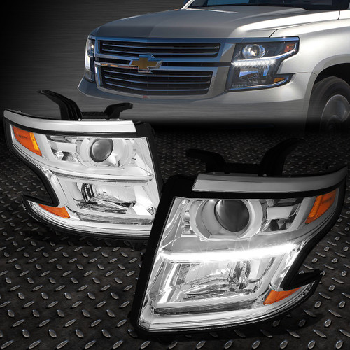 FOR 15-20 CHEVY TAHOE SUBURBAN CHROME/AMBER CORNER LED DRL PROJECTOR HEADLIGHT