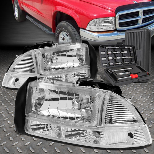 For 97-04 Dodge Dakota Durango Chrome Clear Side Headlight Bumper Lamp+Tool Set
